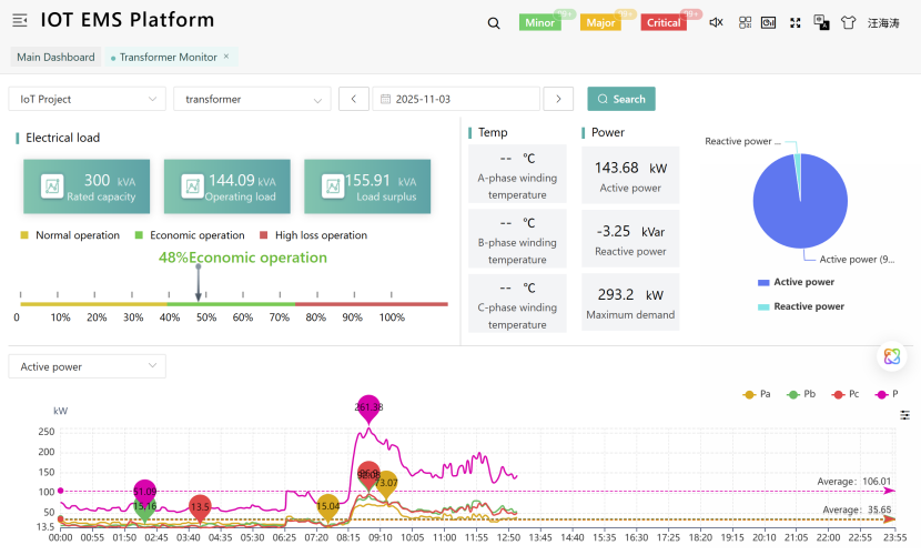 Ensure power supply stability: Real-time monitor key data such as voltage, current, power factor and transformer load rate, detect overloads, faults and other issues promptly, and reduce power outage time.