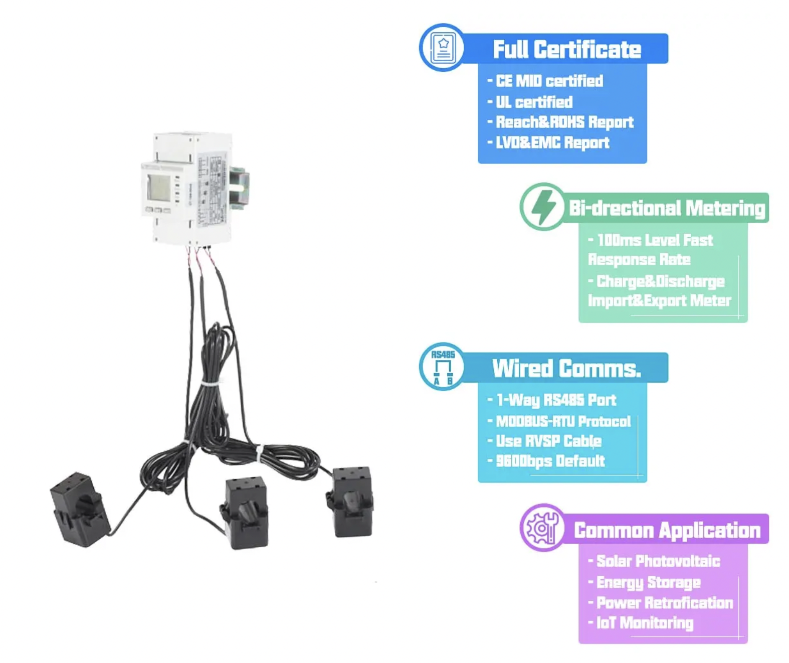 The ADL400N-CT is a rail-mounted multifunctional energy meter designed by Acrel Electric specifically for new energy power generation systems such as photovoltaic grid-connection, micro-inverters, energy storage, and AC coupling. Its core advantages lie in high-precision measurement, rapid response, and intelligent control, serving as a key component for energy management in residential and small industrial/commercial new energy systems.