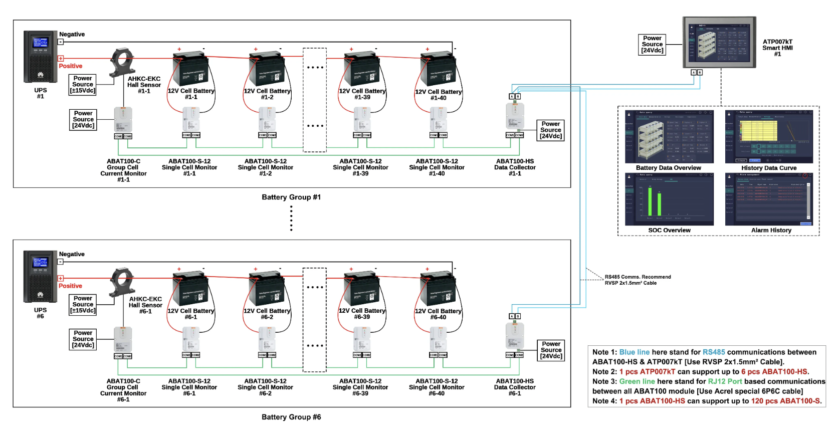 In large-scale data centers, batteries may be deployed independently from UPS units in dedicated battery rooms (as Battery Energy Storage Systems), supplying power to the entire microgrid or High-Voltage Direct Current (HVDC) systems. In such cases, the battery system itself is a standalone asset that naturally requires an independent and more robust monitoring system.